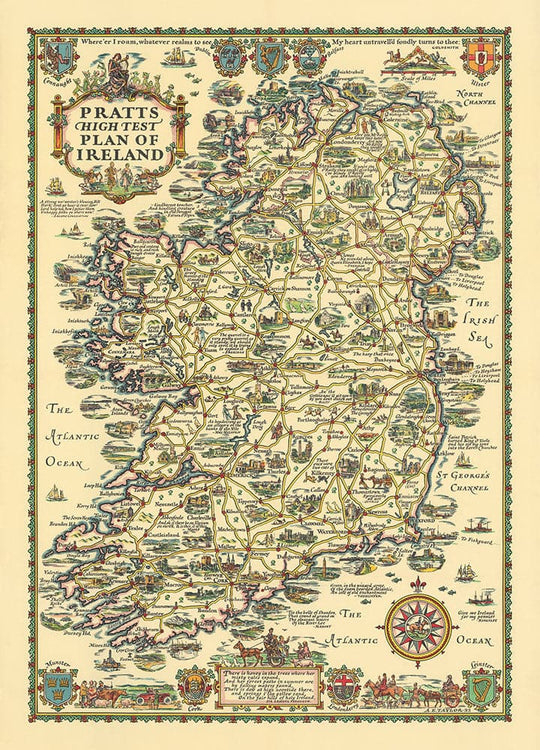 Quasi tutte le città e i villaggi d'Irlanda sono visibili su questa mappa - e in molti casi, accompagnati da una bella illustrazione della strada principale della città o di un altro punto di riferimento notevole.