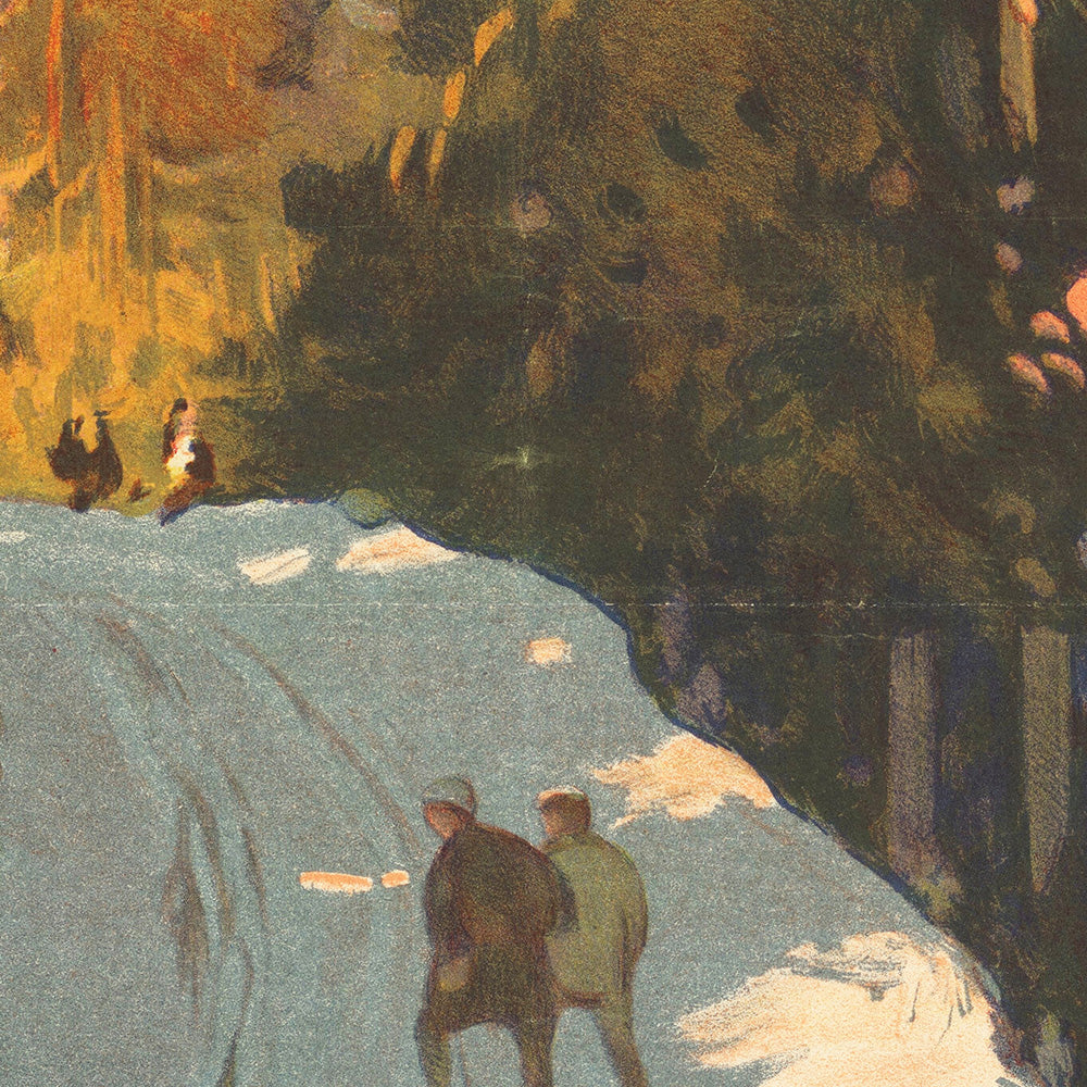 The Vosges range, straddling Alsace and Lorraine, was a prized destination for hiking, thermal spas, and winter sports in the early 20th century. The Eastern Railway linked Paris to picturesque towns and lakeside resorts, transforming weekends into restorative mountain escapes. This poster channels that optimism—wide skies, crisp air, and leisurely excursions—making it especially resonant for anyone who has strolled Gérardmer’s lakeshore, climbed the Hohneck, or meandered along wooded ridges.