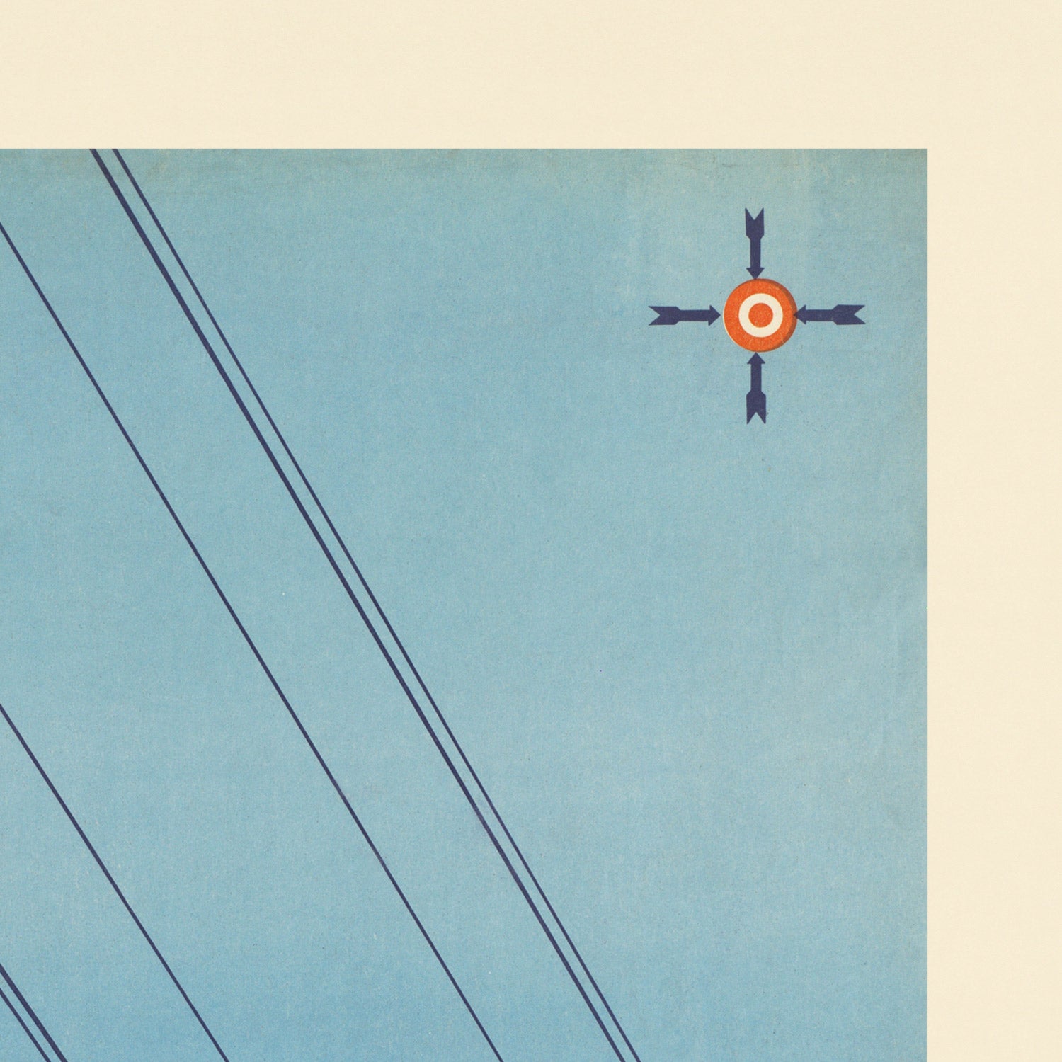 This poster’s subject—holidays in the Austrian high country—speaks to a pivotal moment in European leisure culture. As railways, cable cars, and improved roads opened the Alps to travelers, tourism boards embraced fresh, forward-looking graphics to communicate ease, glamour, and healthy outdoor living. Here, the suggestion of an aerial tramway underscores technological progress, while the monumental mountains evoke a nation defined by its peaks, clean air, and crystalline light.
