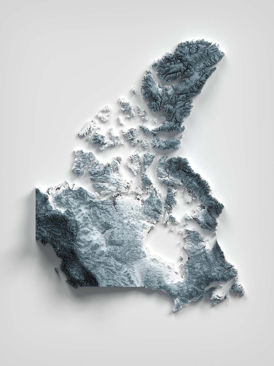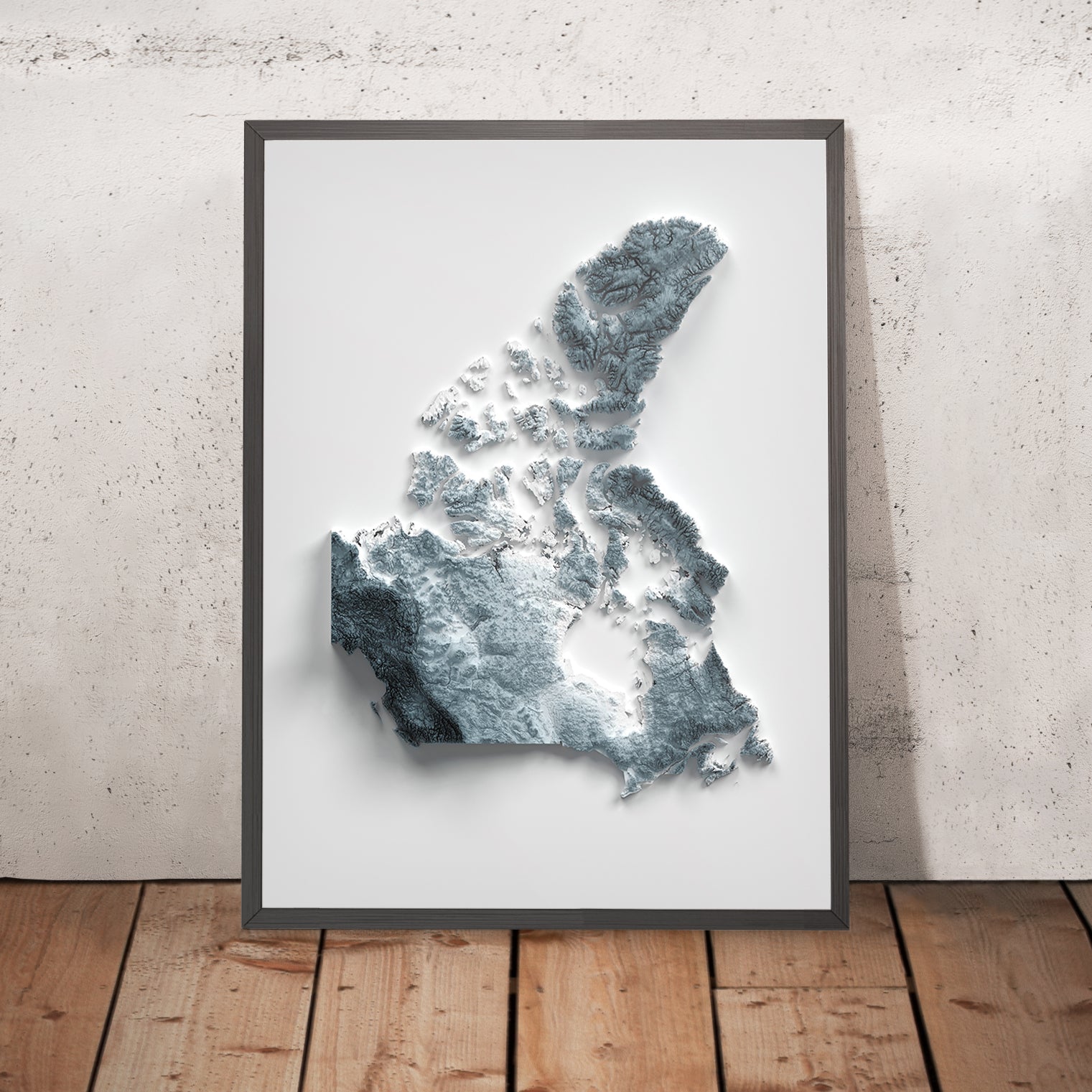 Whether you call Canada home, remember a road trip across its provinces and territories, or are seeking a meaningful gift, this relief map uses light and shadow to reveal the country’s mountains, valleys, plateaus, and coasts in a way that feels both familiar and newly discovered.