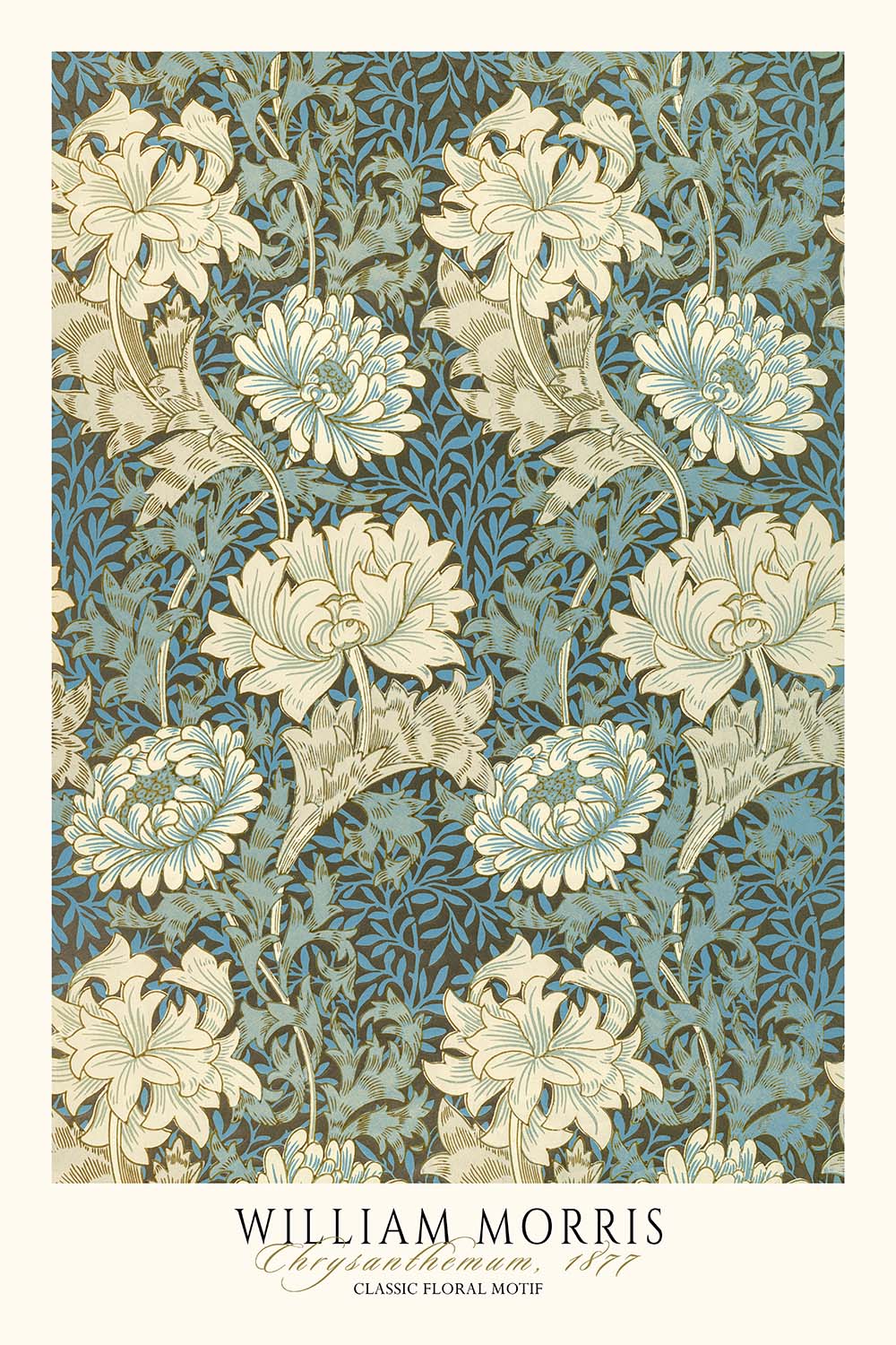 57350964838784::30x40in (75x100cm) / Art print / Blue:://uniquemaps.co/cdn/shop/files/chrysanthemumwilliammorris1877BottomBlue36x24lowrescolourway.jpg?v=1770206171::0.6666666666666666,