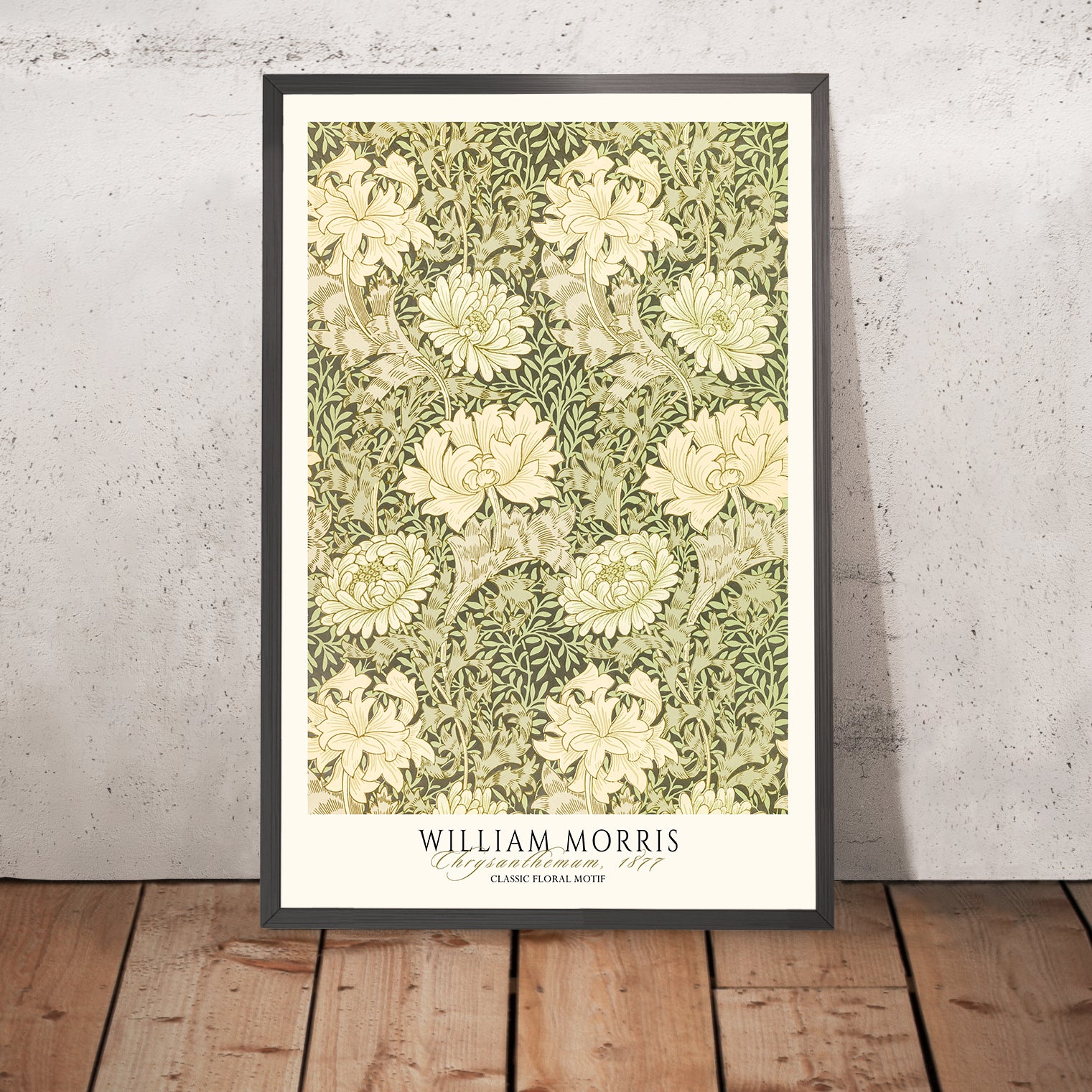 For those building an art wall or seeking a more archival, catalogue-style presentation, we can include the artist’s name and pattern title—“William Morris, Chrysanthemum”—above or below the artwork. Choose a discreet caption for a refined museum look, or a bolder placement to anchor a gallery arrangement; we’ll tailor the typography and placement to your taste.