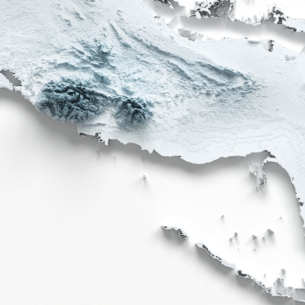 Our shaded relief prints use ultra high resolution topographic data and a secret 3D rendering process to create the illusion of raised terrain — like the mountains are about to lift right off the page. No labels, no borders, no distractions. Just the raw shape of the land, brought to life in a clean, modern style.