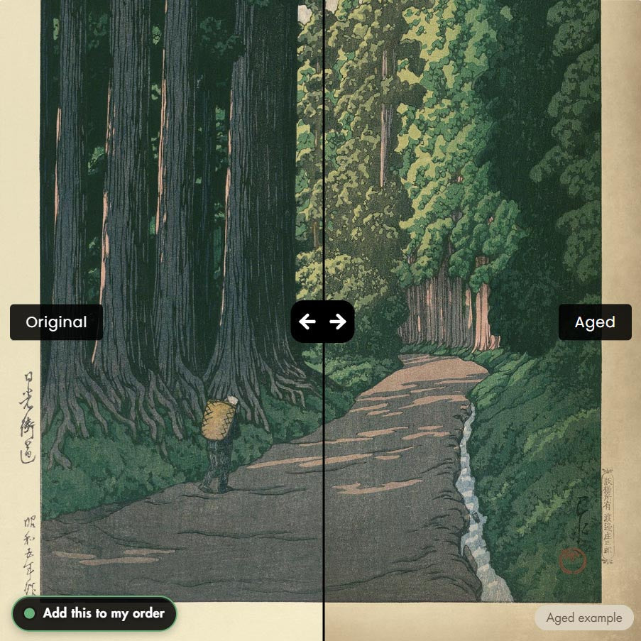 You can also choose to age your art print to make it look older. This is popular amongst my customers who want their artwork to look like an older, antique print. You can see an example of ageing in the sixth product image, or go ahead and check out lots of examples of other aged artwork.