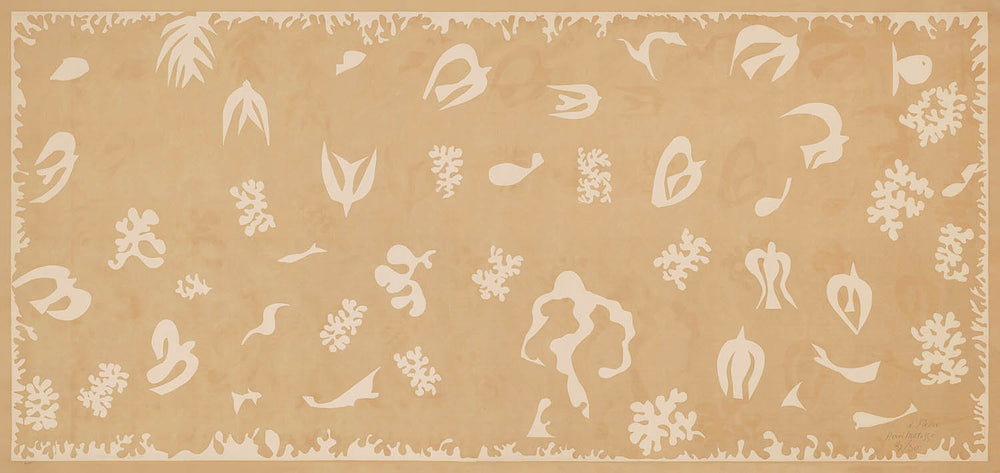 Henri Matisse remains a pivotal figure in modern art, renowned for his dynamic color play and abstract forms that pushed the boundaries of traditional representation. "Océanie, le ciel” is a testament to Matisse’s ability to transform personal experience into universal themes, conveying a soothing harmony through its organic shapes and colors. The piece predominantly features calming shades of brown and beige, inviting contemplation and peaceful reflection. This artwork effortlessly blends into various decor styles, making it an enriching addition to any collection.