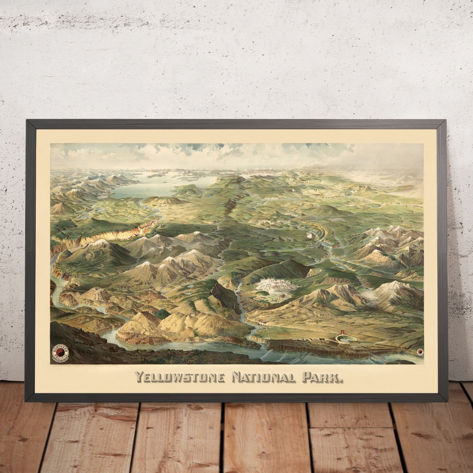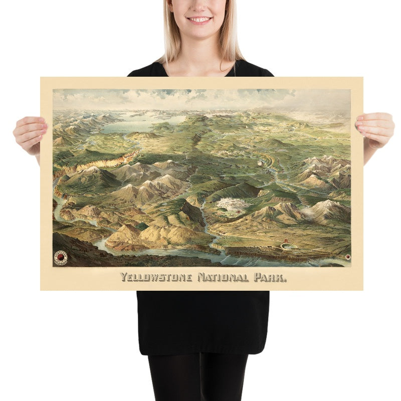 This 1904 pictorial map of Yellowstone National Park, originally published by Henry Wellge and the Northern Pacific Railway Company, is a stunning and historically significant piece of cartography. The map is a detailed bird's-eye view of the park, showcasing its natural wonders and man-made landmarks. It is a valuable resource for historians, cartographers, and anyone interested in the history of the American West.