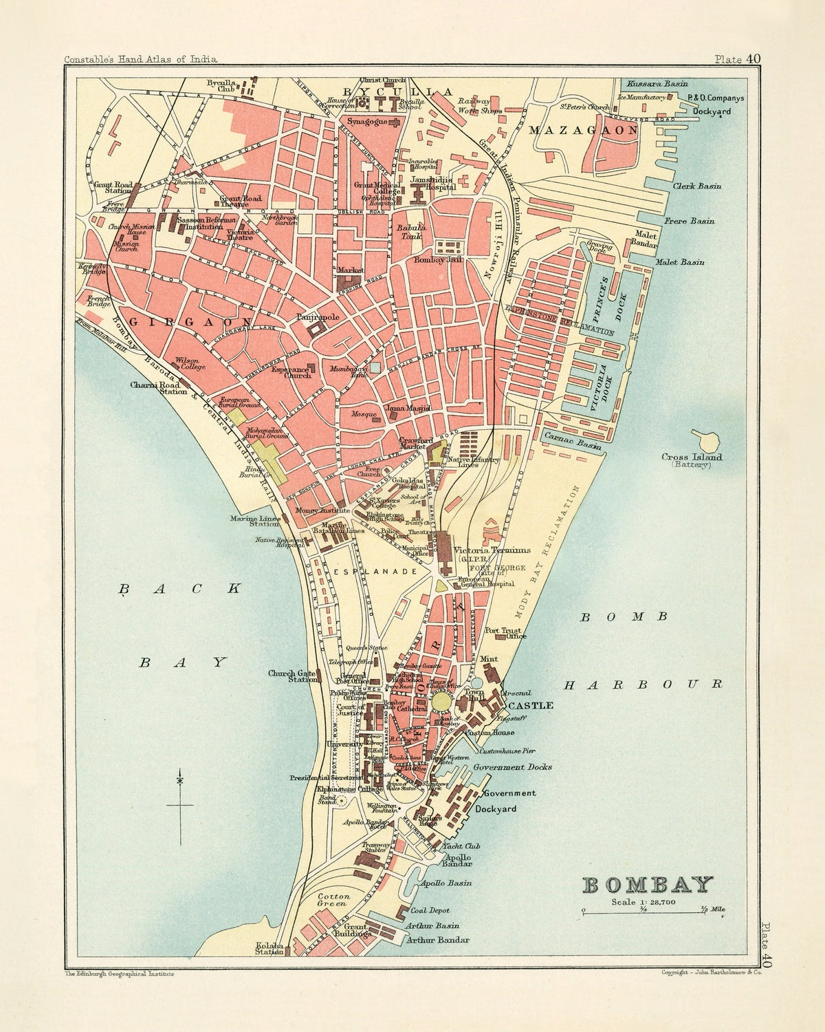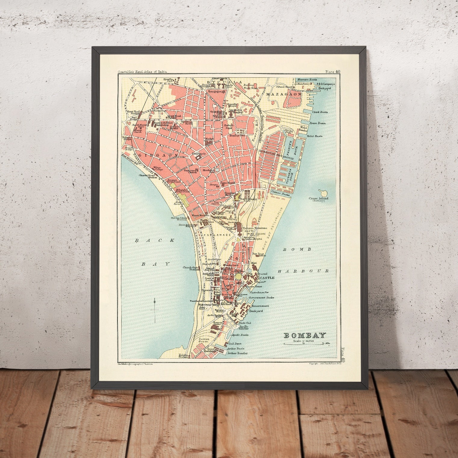 The hand behind this synthesis is J. G. (John George) Bartholomew of The Edinburgh Geographical Institute, with copyright by John Bartholomew & Co.—a cartographer celebrated for elevating clarity and color to instruments of analysis. In Constable’s Hand Atlas of India, a sixty-map suite with meticulous indexing, Bartholomew fused administrative and thematic intelligence for scholars, traders, and civil servants alike. Plate 40 stands out within that corpus for its metropolitan completeness: shipping and shorelines, mills and maidans, bazaars and boulevards, all legible at a glance yet generous in detail. As a historical depiction of Bombay during a pivotal decade, it remains a touchstone for understanding how the city’s neighborhoods, institutions, and maritime economy were braided into one coherent, modernizing system.