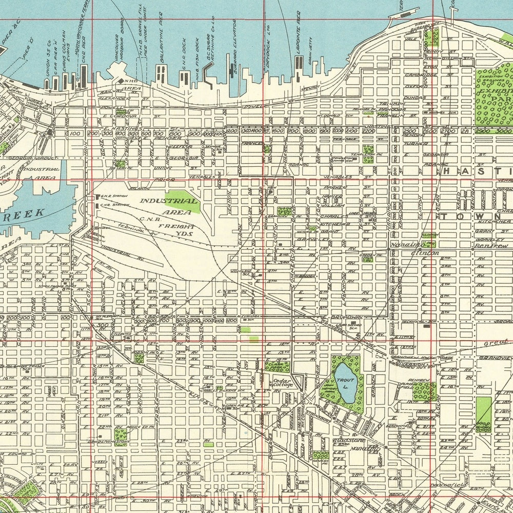 - Historical Significance: Created post-World War II, the map represents a period of growth and urbanization in Vancouver, reflecting changes in land use, infrastructure, and urban development trends of the time.