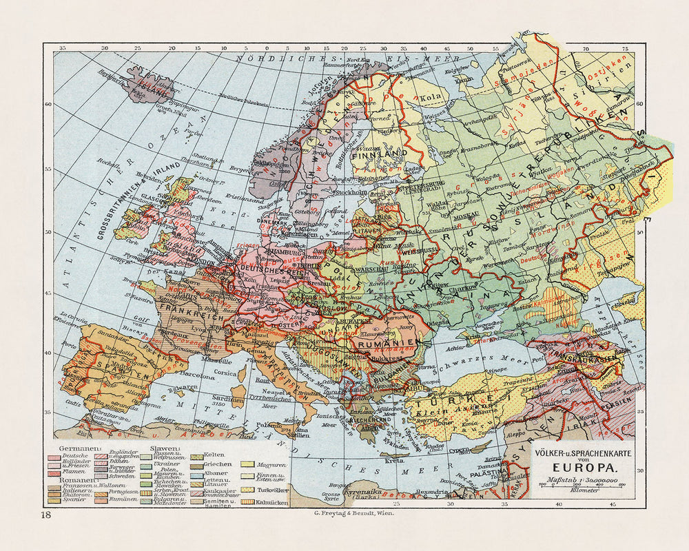 - The map is titled "Volker- u. Sprachenkarte von Europa".