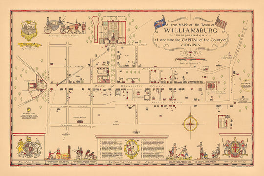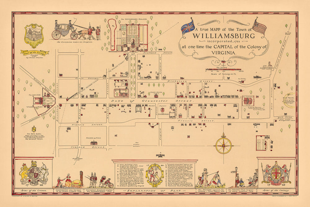 - Color pictorial map of Williamsburg, once the capital of Virginia