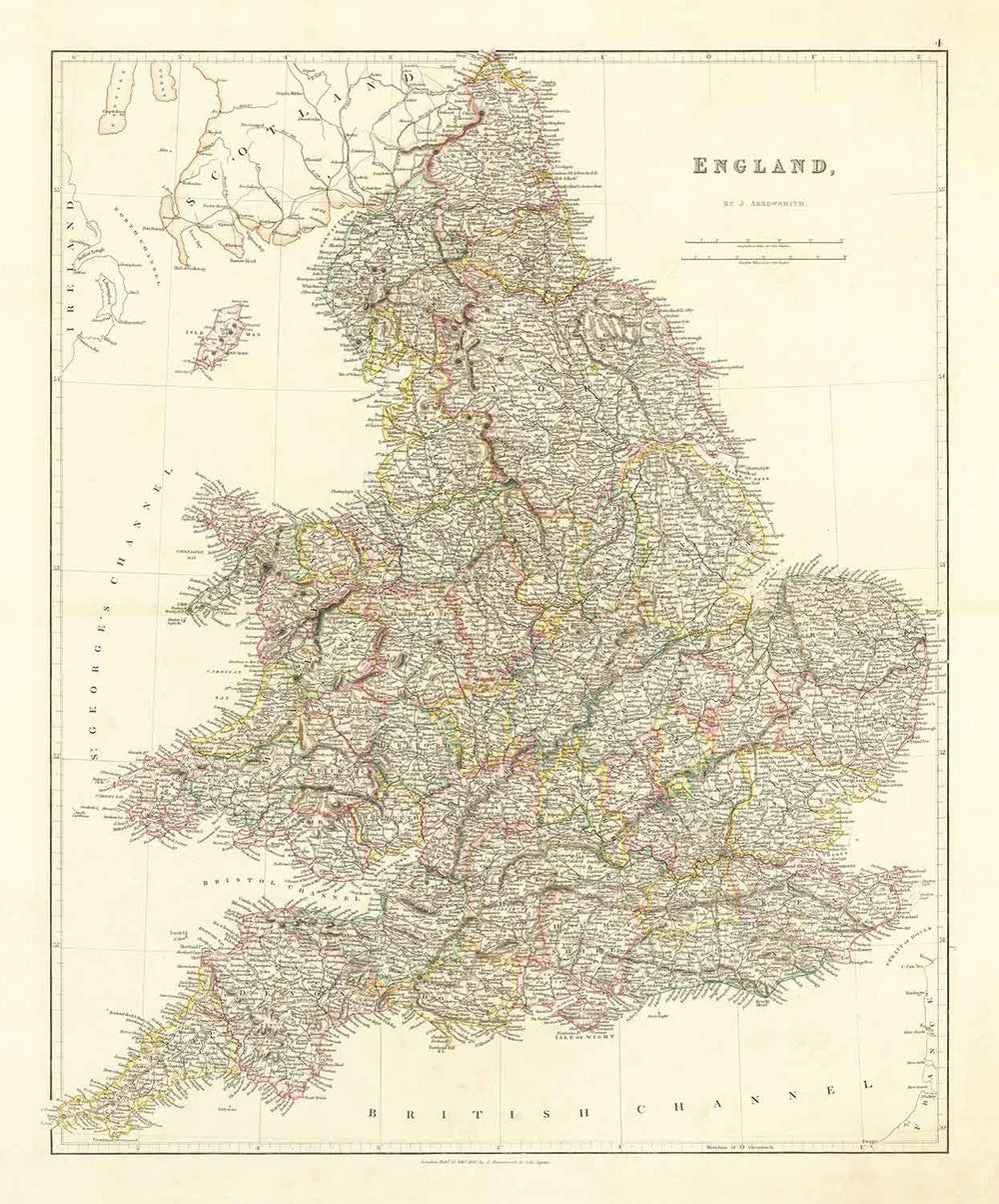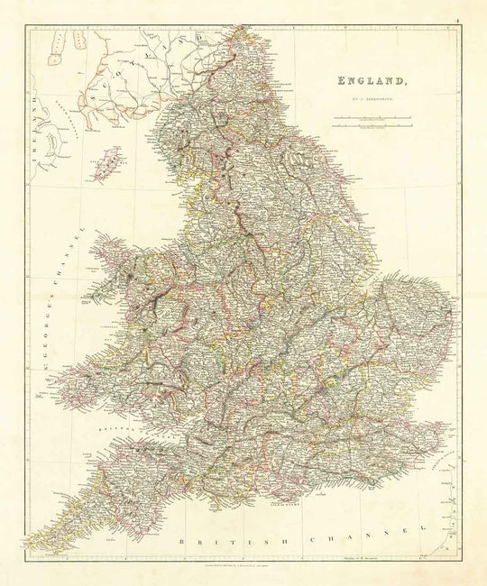 A gorgeous map of the counties of England and Wales, originally published in 1832 by probably the most sought after mapmaker of the mid-19th century, John Arrowsmith.