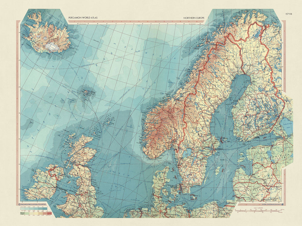 Old Map of Northern Europe, 1967: Scandinavia, British Isles, Iceland, North Sea & Baltics