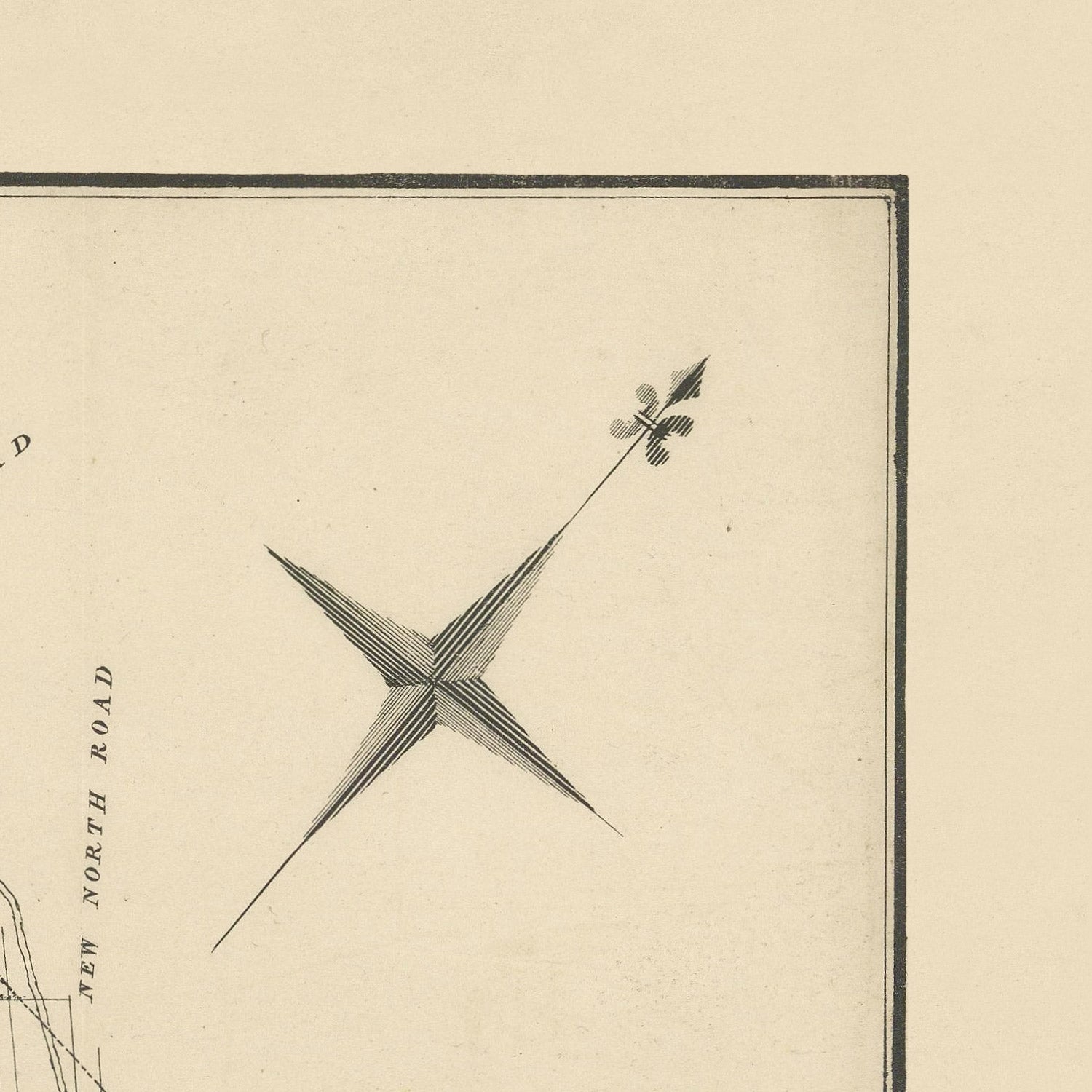 - The map is presented in a monochrome style, emphasizing the intricate street layout, buildings, and features, which were typically hand-drawn and engraved, indicative of early 19th-century cartographic techniques.