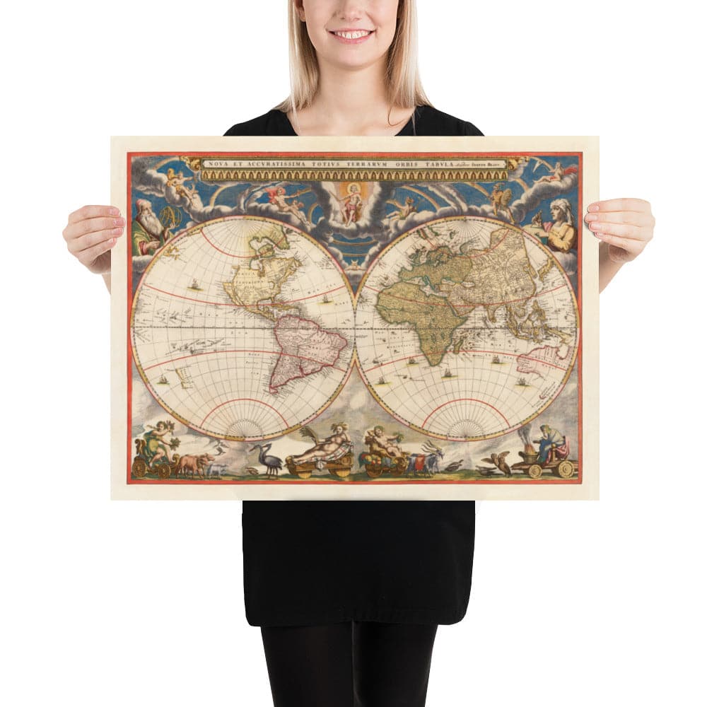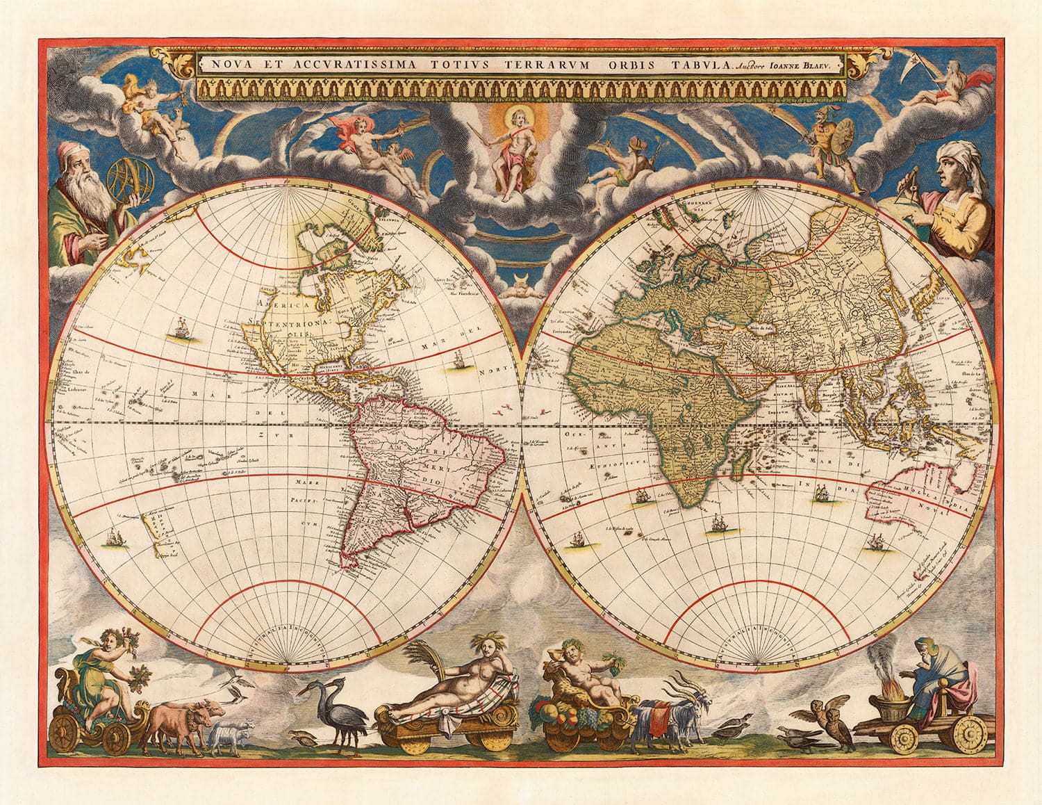 Old World Atlas Map, 1662 by Joan Blaeu: Rare Handcoloured Vintage Wall Art