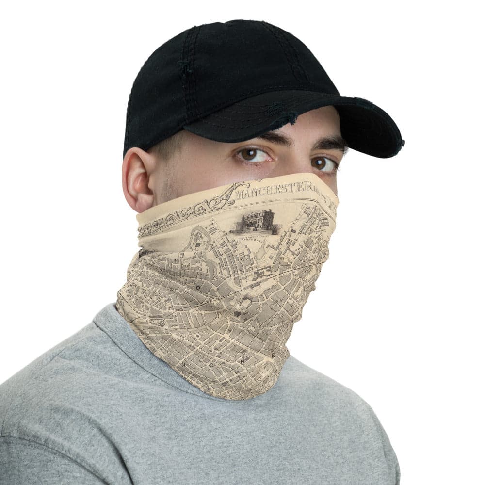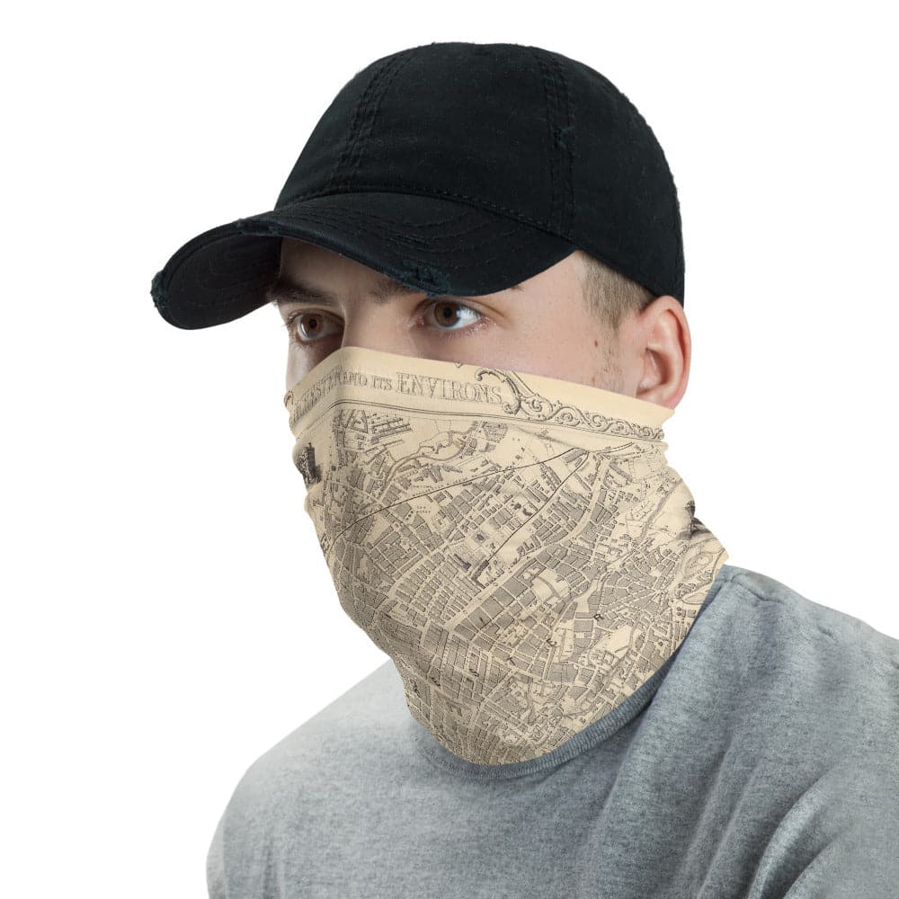 Manchester Face Mask / Neck Gaiter with vintage map print of Manchester and Its Environs by John Rapkin, 1851